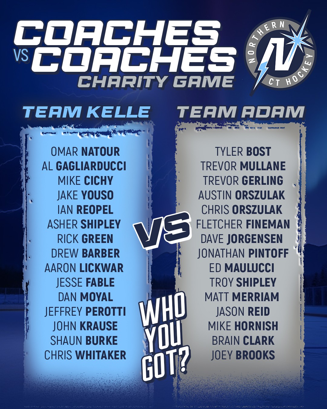 Join us for an exciting evening of hockey as the Lights and Nor’Easter coaches come together to go head-to-head in our first-ever Northern CT Hockey Coaches Charity Game!